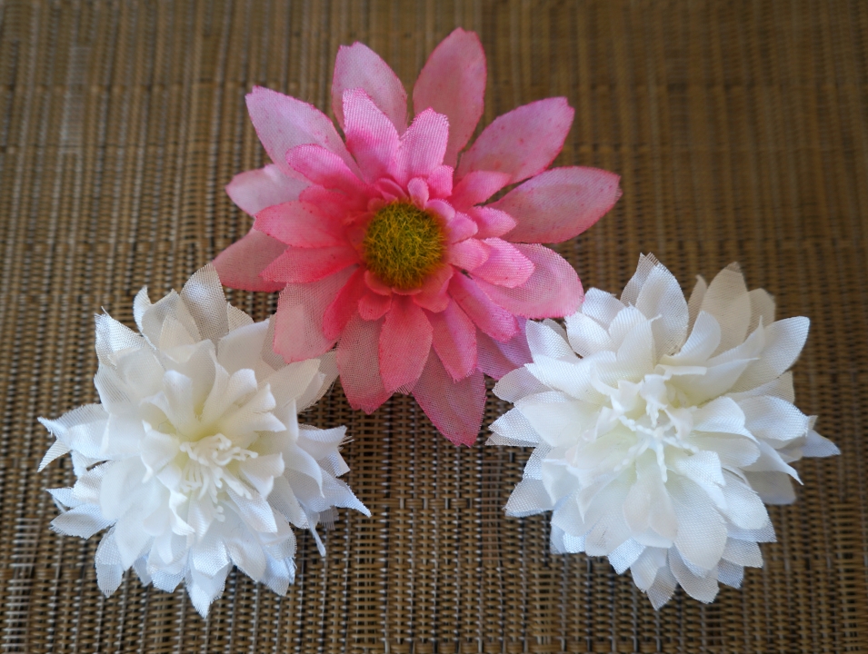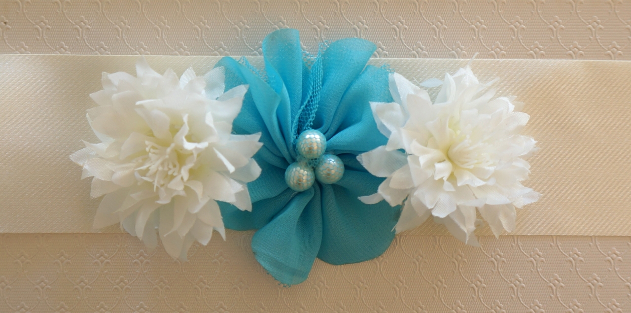If you don’t want to use fabric flowers the other option is to use real flowers to match with your wedding flowers.