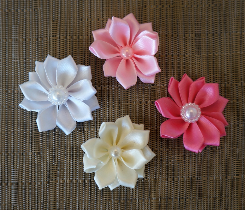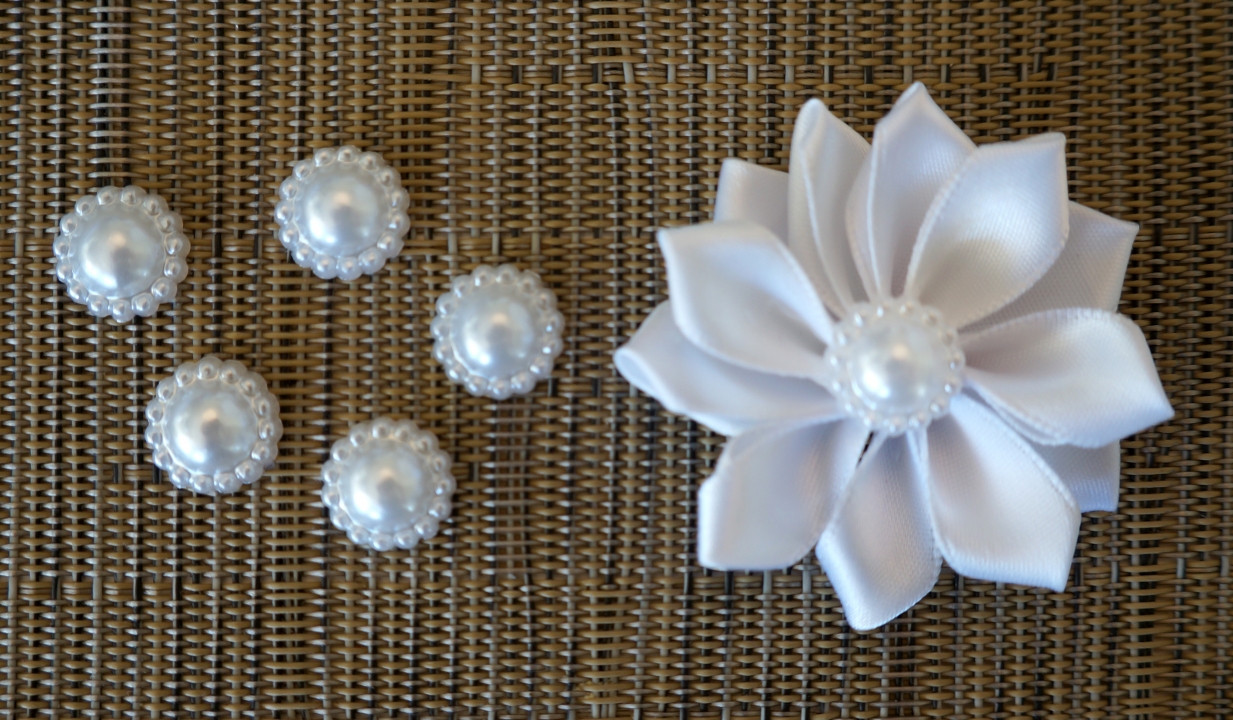 These can come in different colors and sizes. I personally like the white pearls on a white flower, for a simple subtle look.